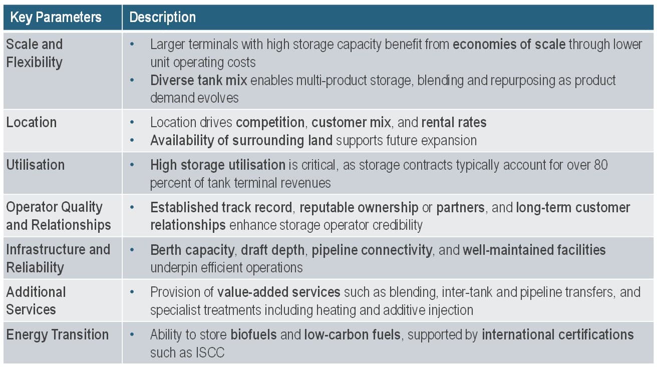 The remaining revenue streams are derived through provision of ancillary services such as blending, jetty services and heating. Most independent storage operators would typically pursue a business model based on serving a steady group of large producers and refiners, while retaining some excess capacity to capture spot demand from traders.