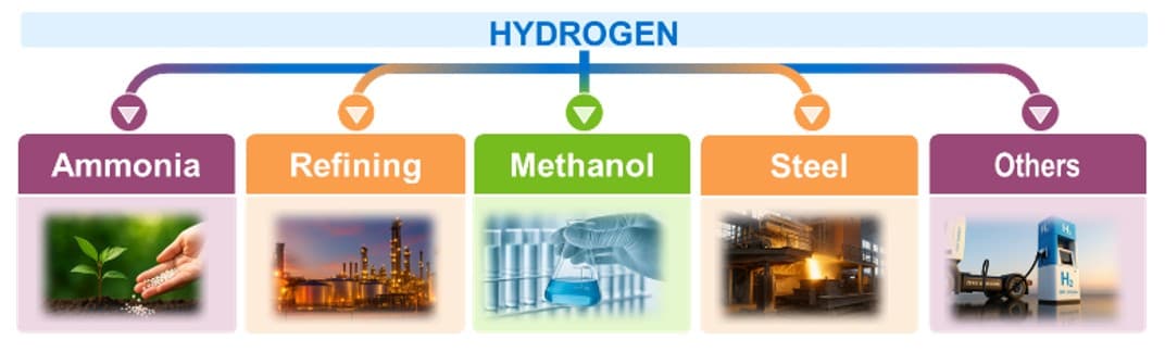 Hydrogen is a key feedstock used in the chemical industry for producing ammonia, methanol, cyclohexane, hydrogen peroxide, aniline, and oxo alcohols, amongst others. It is also used in the refining sector to decrease the sulfur content of fuel streams as well as in various other industries such as steel, float glass, food processing, pharmaceuticals and heating and in several emerging applications.