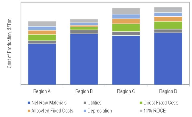 Detailed cost estimates are presented to produce recycled monomers and corresponding plastics from waste material, at USGC, Western Europe, China, and Japan locations. Estimates are developed for all the six polymers covered in the study. Sensitivity analyses on feed pricing are also included.